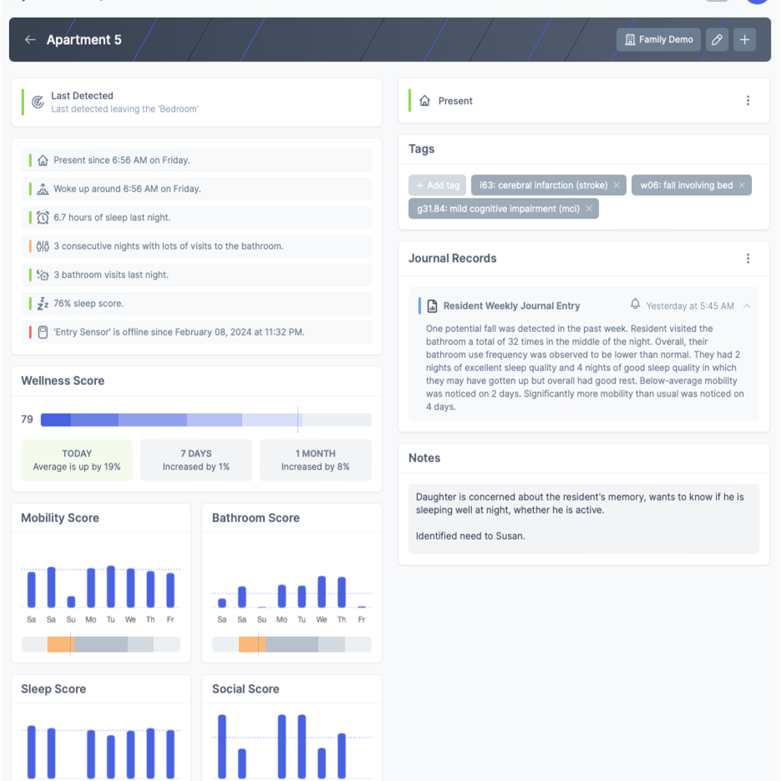 Our AI Caregivers learn individual patterns and surface alerts when sleep, mobility, or toileting routines shift.